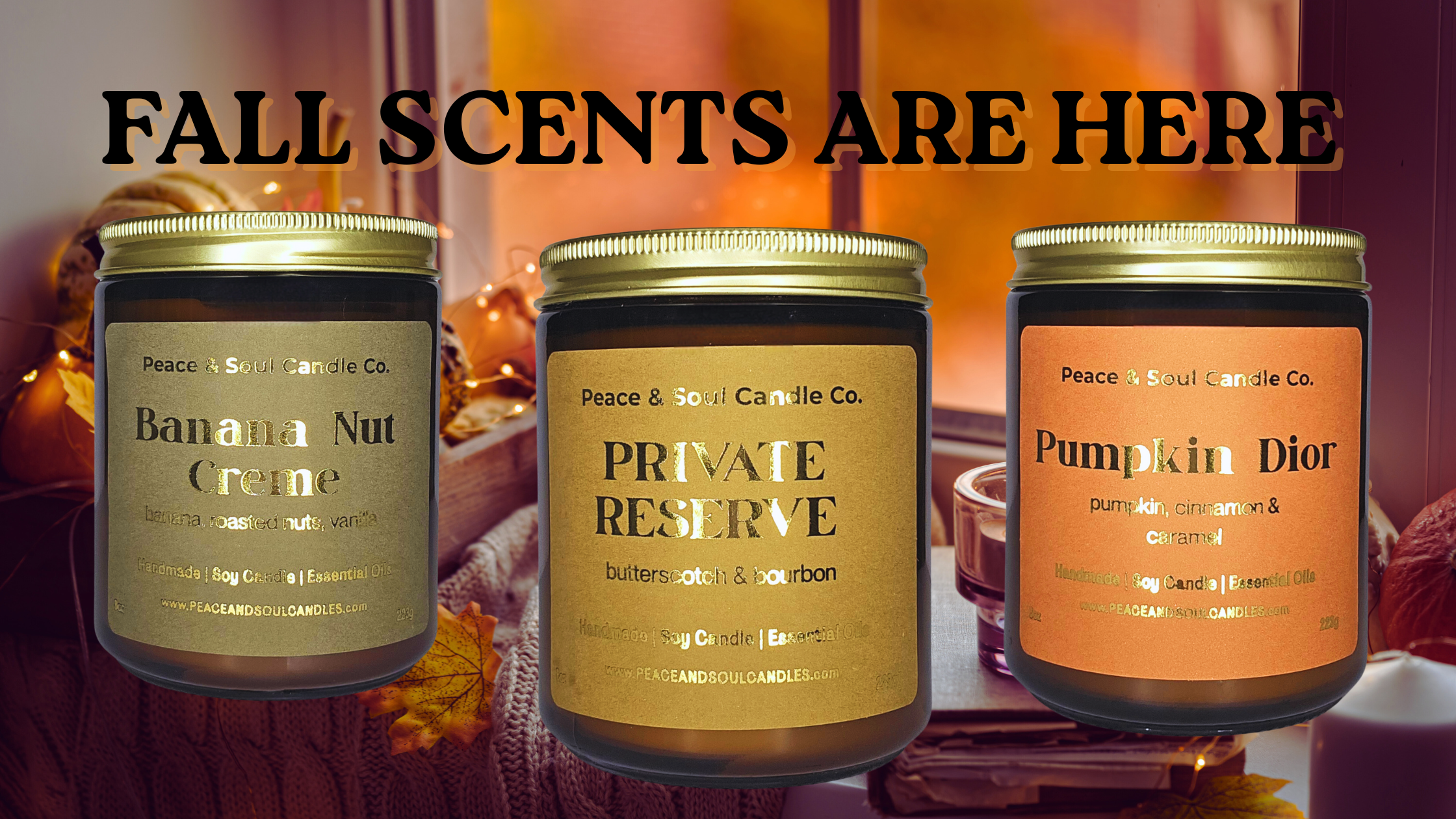 The Fall Candle Collection captures the cozy luxury of the season with rich, nostalgic fragrances that warm the soul. Each hand-poured candle blends silky soy wax with comforting notes of spice, wood, and amber to create an inviting autumn ambience. Light one and welcome the season with comfort, warmth, and a touch of peace.
